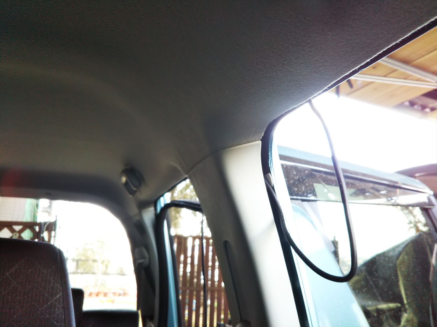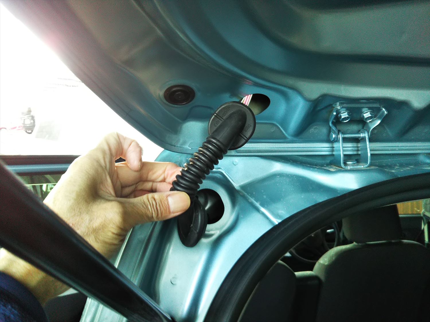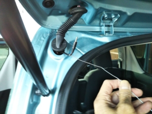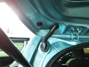 窓枠のゴムを引っ張って外すと、内装の中にコードを押し込むことができます。