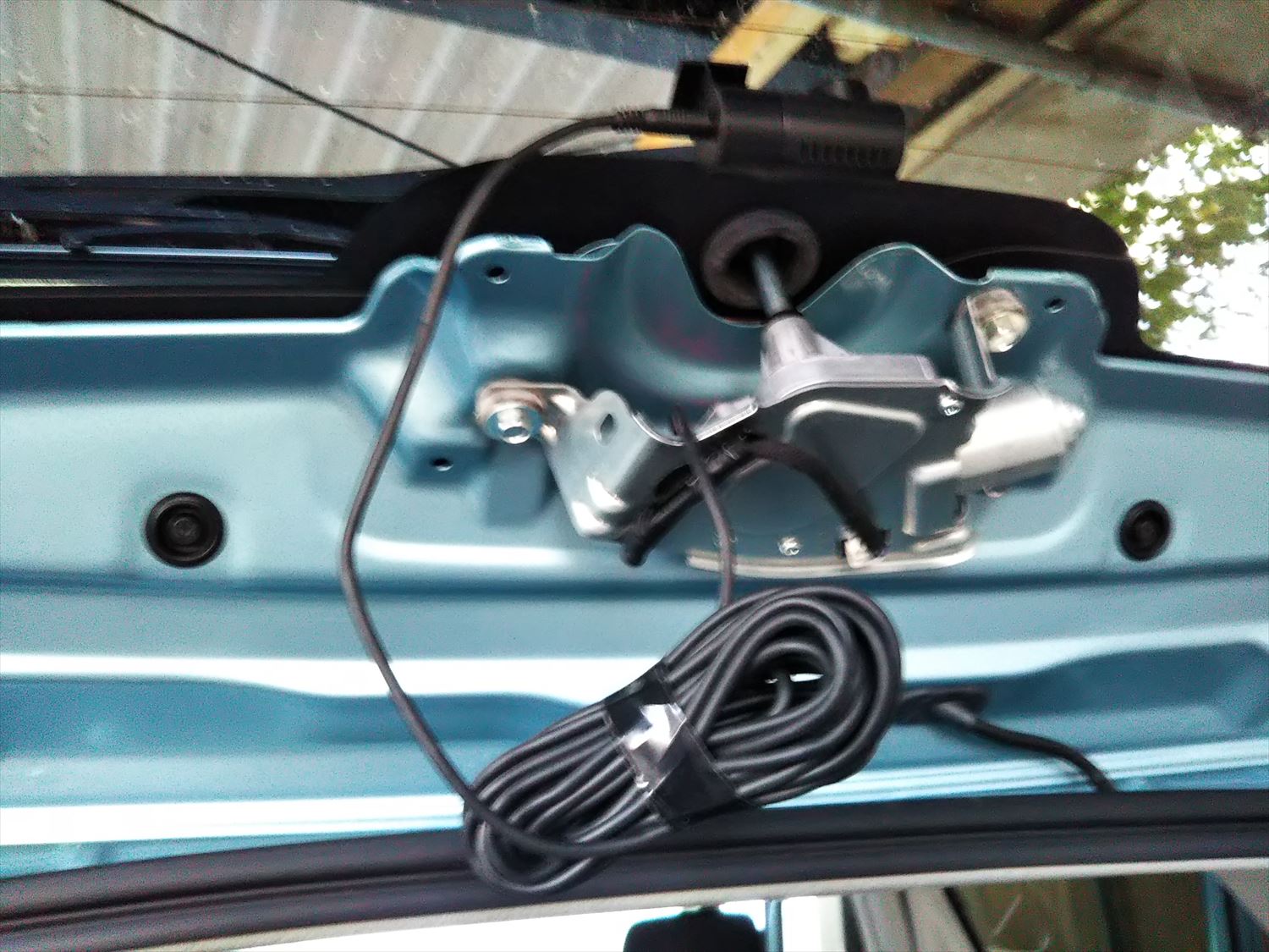 車体とバックドアはゴムチューブの中を配線が通っています。