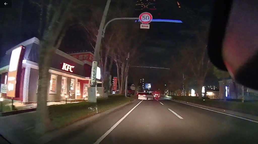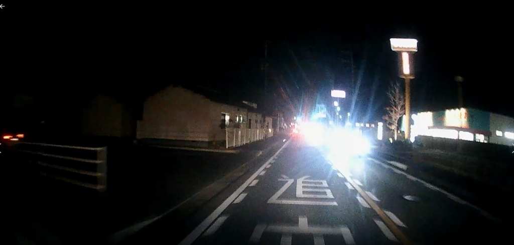 対向車のライトは中国製ほど散乱しておらず、対向車の存在がよくわかります。