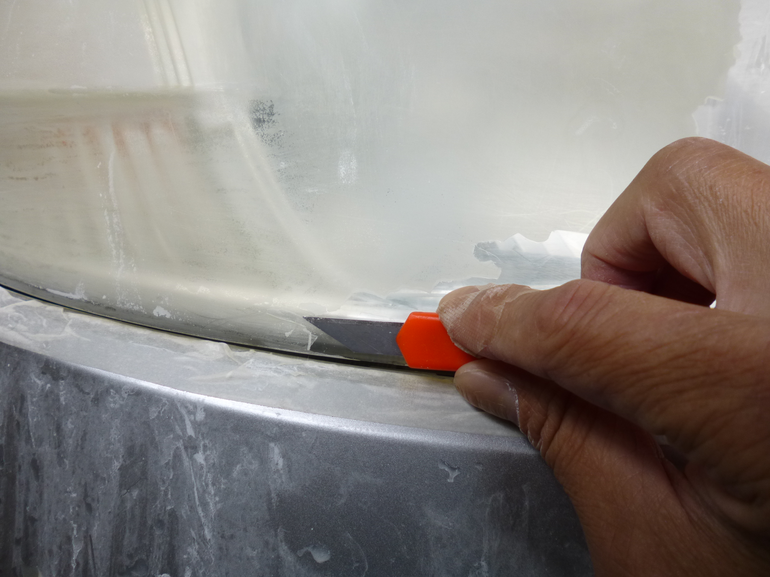 そして何と白濁した塗装面が簡単に剥がれていきます。