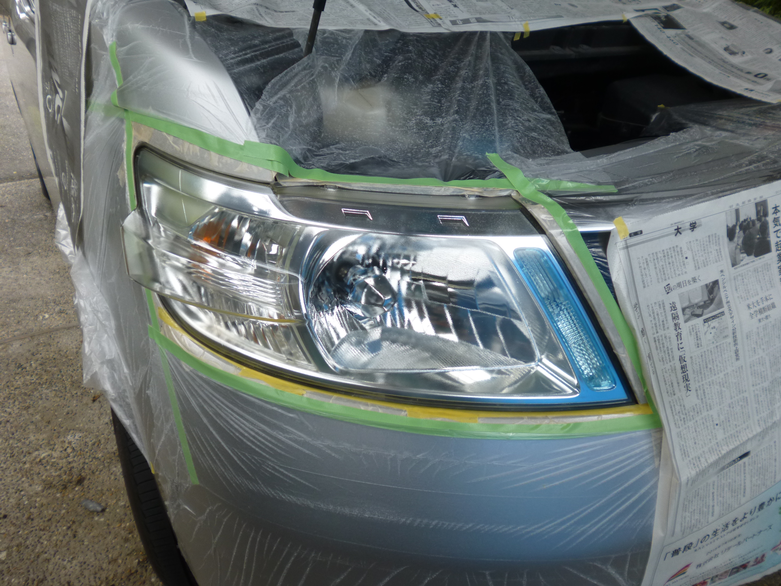 ヘッドライトの表面がくすんできたので、塗装しました。