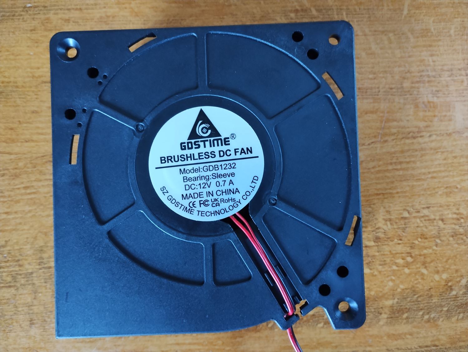 先日作ったクールシートは、汗はかかないくらいの効果はあったものの、やはりもう少し強力な風が欲しいので、より強力なファンに替えることにしました。