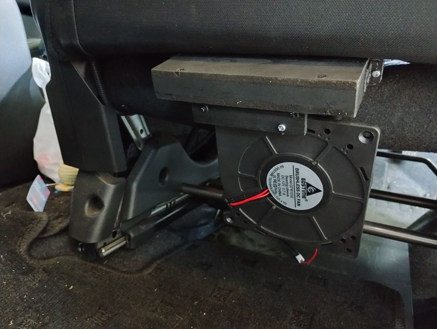 シート側の吹出し口はそのまま使い、ファンからの吸入口はファンの大きさに合わせて新たに作り直しました。