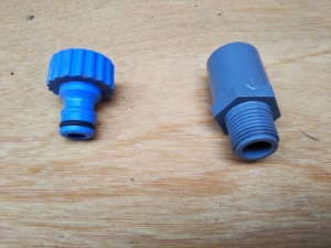 VP13とTS継手を塩ビ管用接着剤で接着し、それにネジ付き蛇口ニップルをねじ込みます。