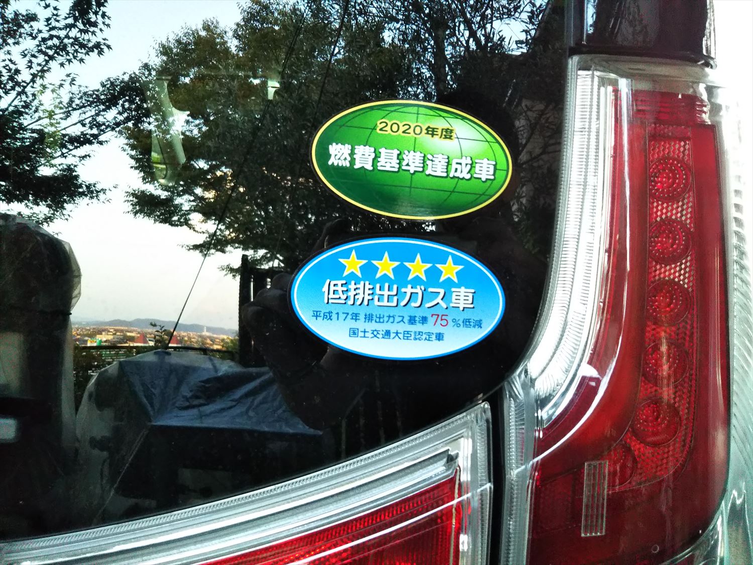 車を買ったときにリアウィンドウに貼られているステッカー。