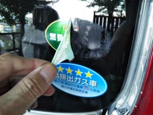 「燃費基準達成車」とか「低排出ガス車」とか表示されているやつ。