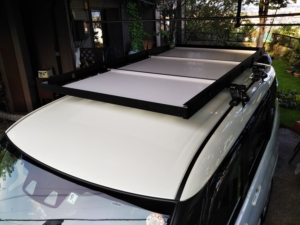 今まで夏場は車の上に「たてす」を使った日除けを載せていたので、炎天下駐車しててもそれほど車内の気温が上がらず快適だった。