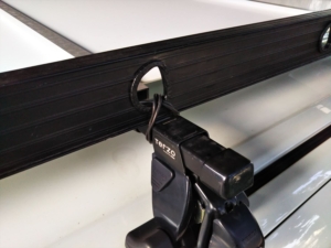 ルーフキャリアへの固定は、以前と同じように配線用のIV線を使用。
