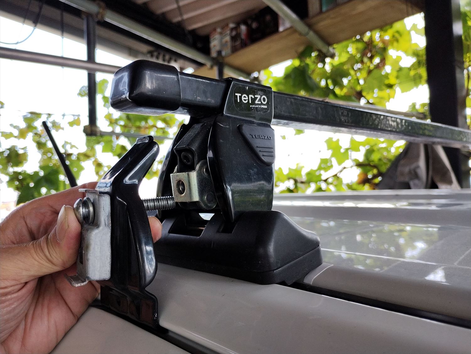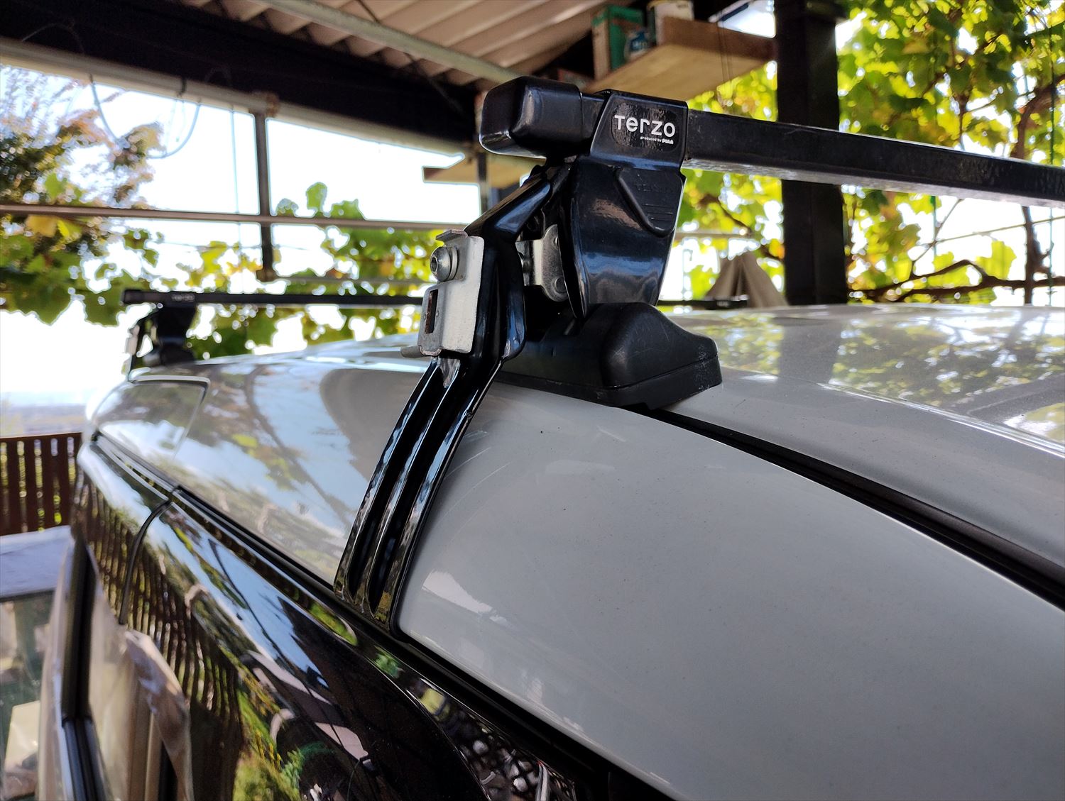 さて後ろ側のスライドドア部は今まで通りTERZOを使うとして、前側のフロントドア上部にTERZOのフットが取り付けられるか。