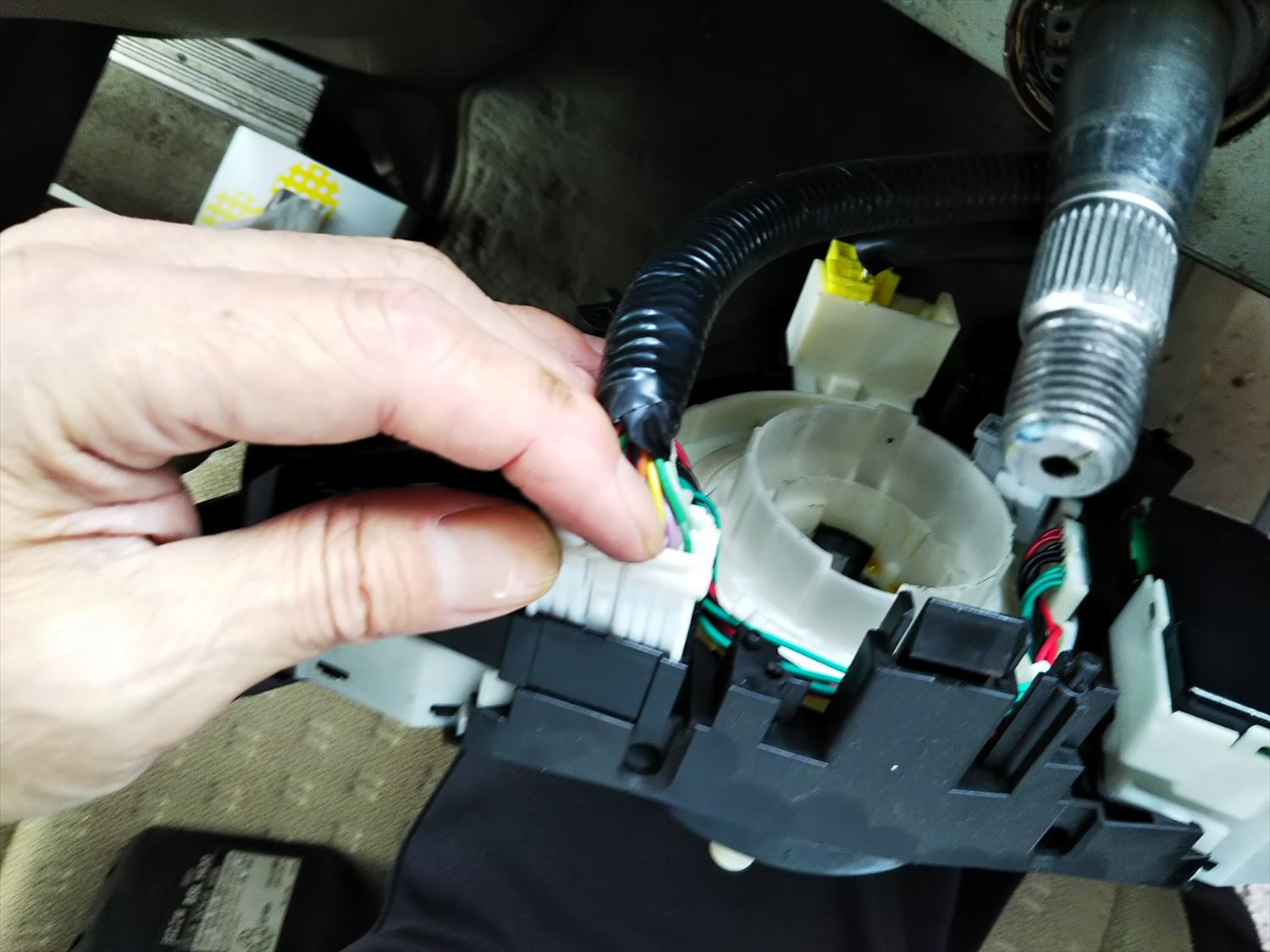 スパイラルケーブルに付いているウオッシャーレバー根元のコネクタを外し、