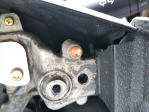 ステアリングを強く引っ張ると手前に外れますが、ナットを途中で止めておけば勢い余って外れても怪我をしません。
