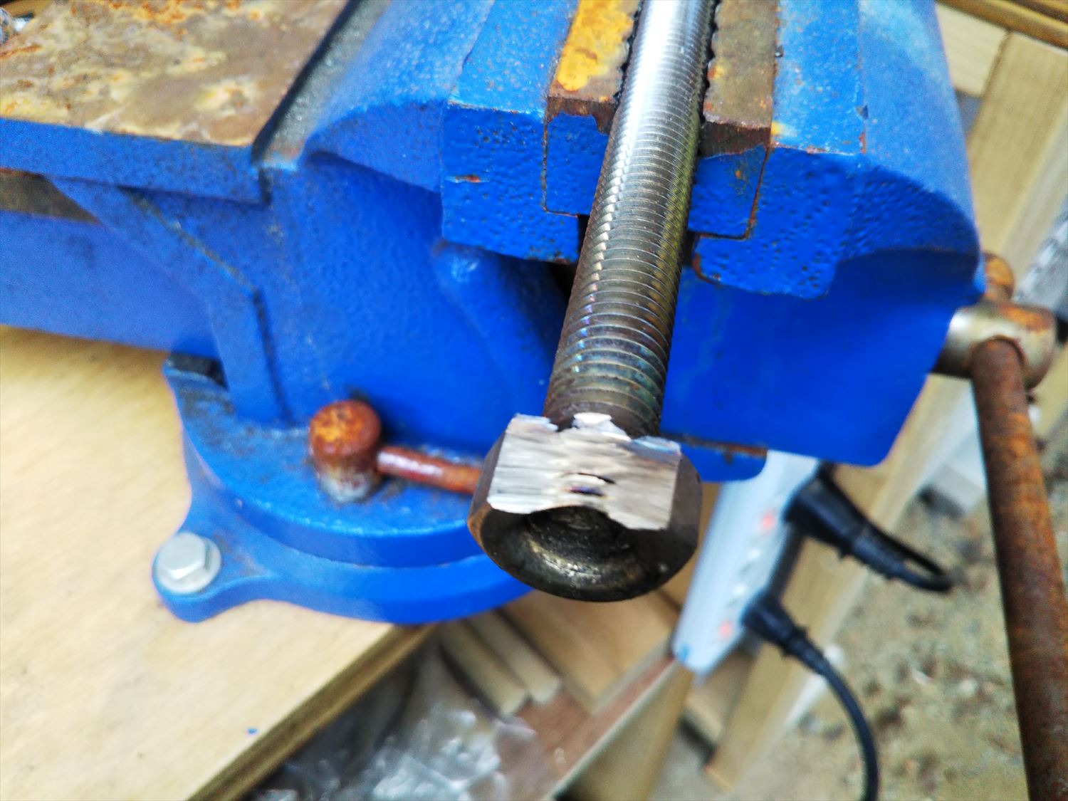 ナビ本体とディスプレイの接続に使われている鉄の丸棒が直径12mmであることを確認できたので、M12のステンレス長ネジを使ってスマホスタンドを作ることにしました。