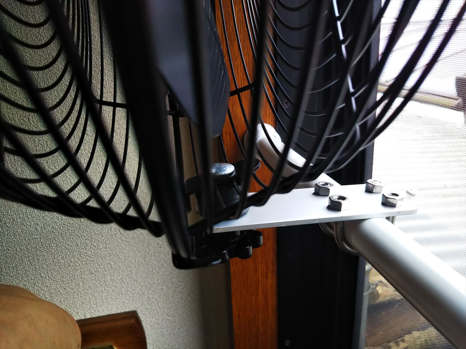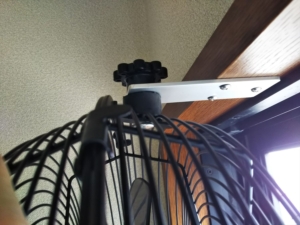 山善のYMY-D30という扇風機、左右に2箇所ネジでスタンドに取り付けられていて、上下に風向きを変えられるようになっている。