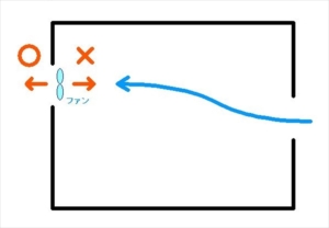 次に反対方向の風が吹いている時、つまり右から左へ風が吹いているときはファンも左方向へ風を送らないといけない。