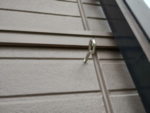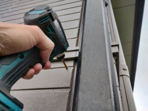 目地から2cmくらい離れたところには鉄骨があるので、そこに下穴を開けます。