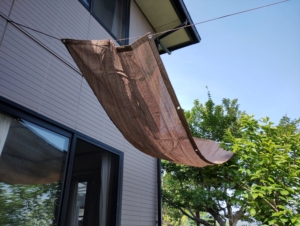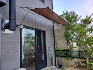 そこで庭先に置いていても直射日光が当たらないよう、オーニング(日除け)を作ることにしました。