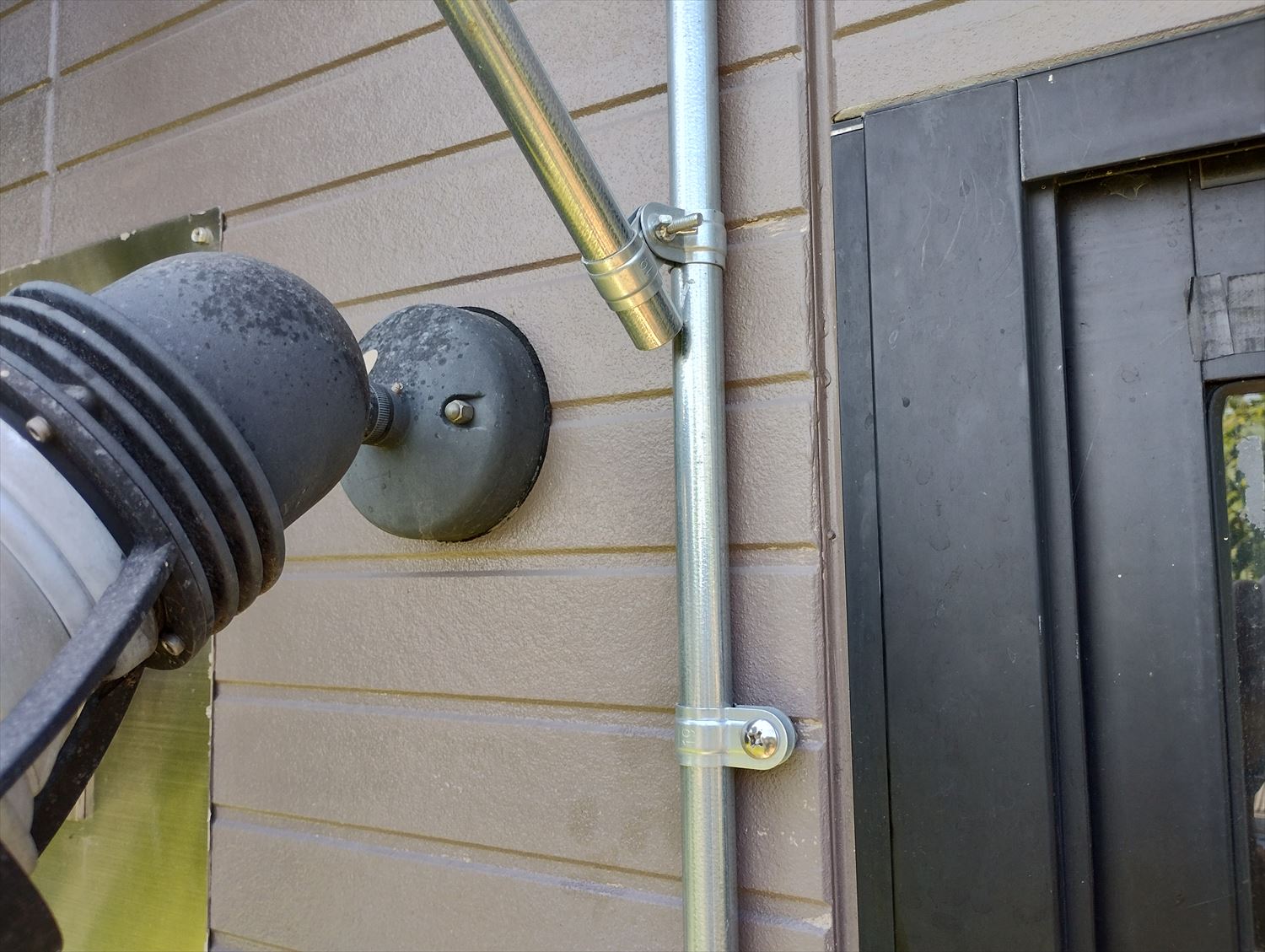 直径19.1mmの農業用パイプを金具とタッピングビスで固定しました。