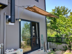 日中の日差しを観察すると、午前中朝日が差し込むので、東側にもオーニングを追加しました。