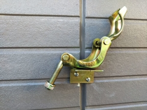 筋交いを入れてもグラグラするので、どこか1箇所を建物に固定する必要があります。