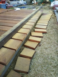 基礎は今までウッドデッキで使っていたツーバイフォー用のコンクリート基礎材を流用しました。