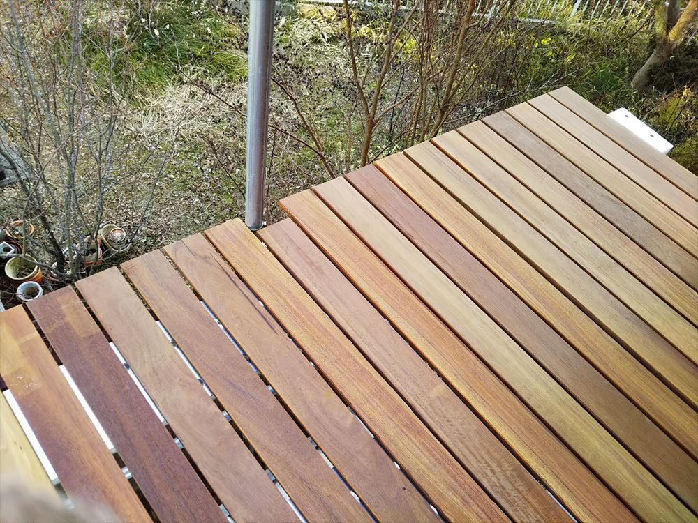 ・デッキの板材はアイアンウッドを使う。
