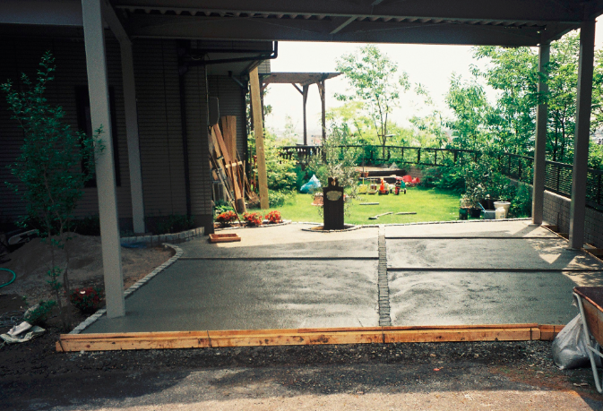 ガレージの土間をコンクリート洗い出しで仕上げました。