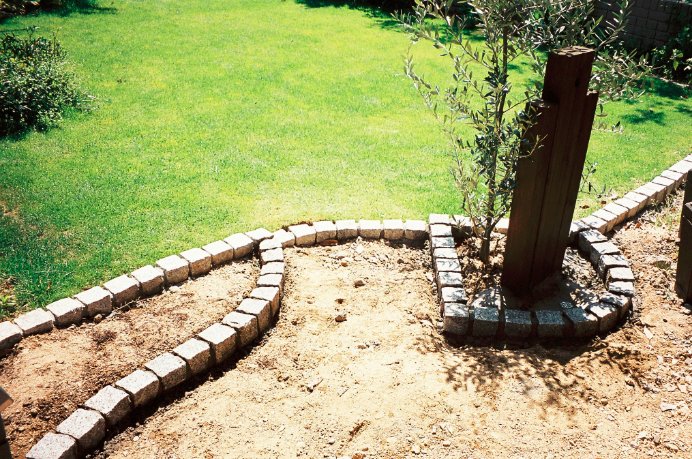 ピンコロ石を使わない所は、木の板で型枠を作ります。
