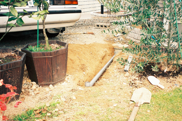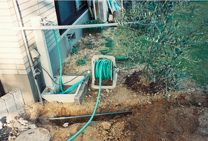 ガレージには水道は必要なので、水道の配管を先にしておきます。