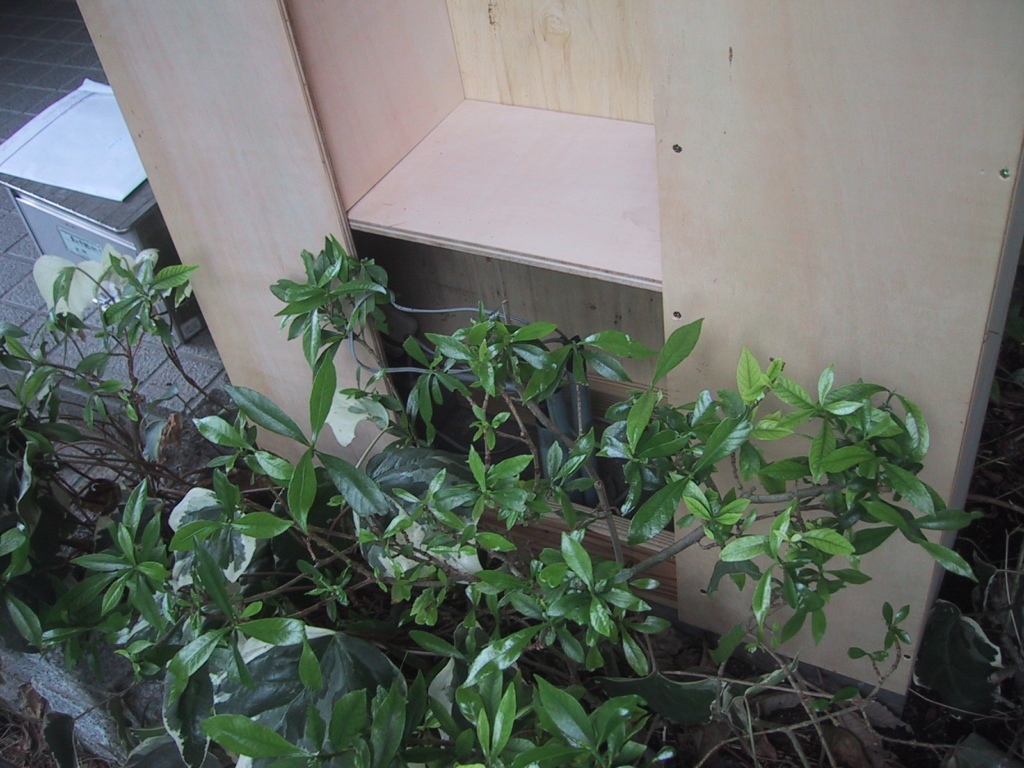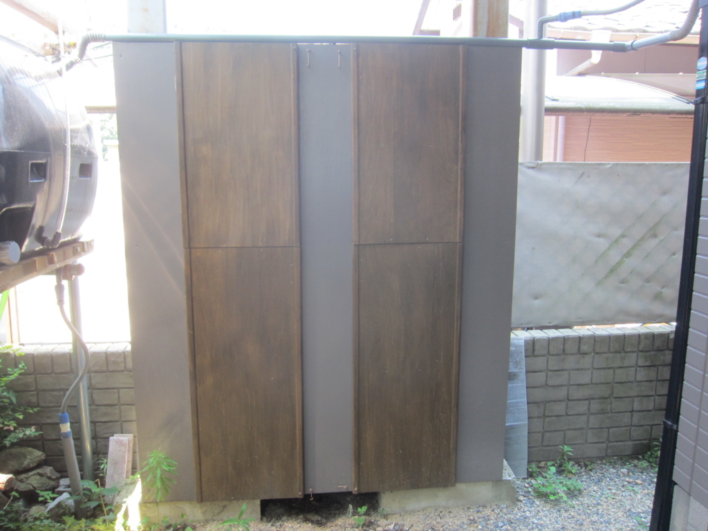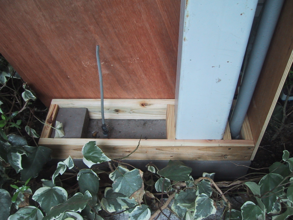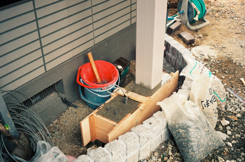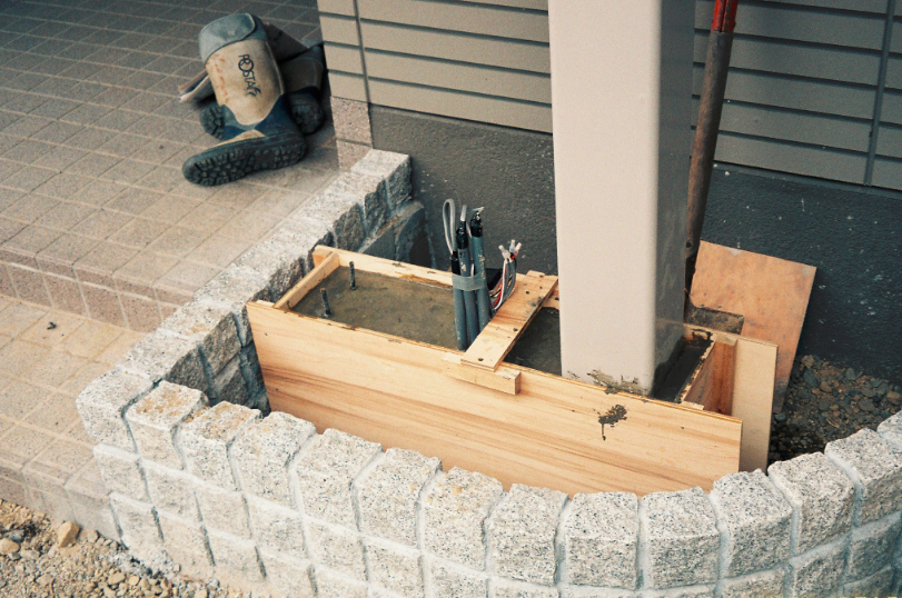 2000年に外構工事をしたとき、ついでに玄関前にガレージの鉄骨を利用して収納を作ろうと思い、収納用の基礎を作っていました。
