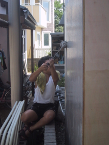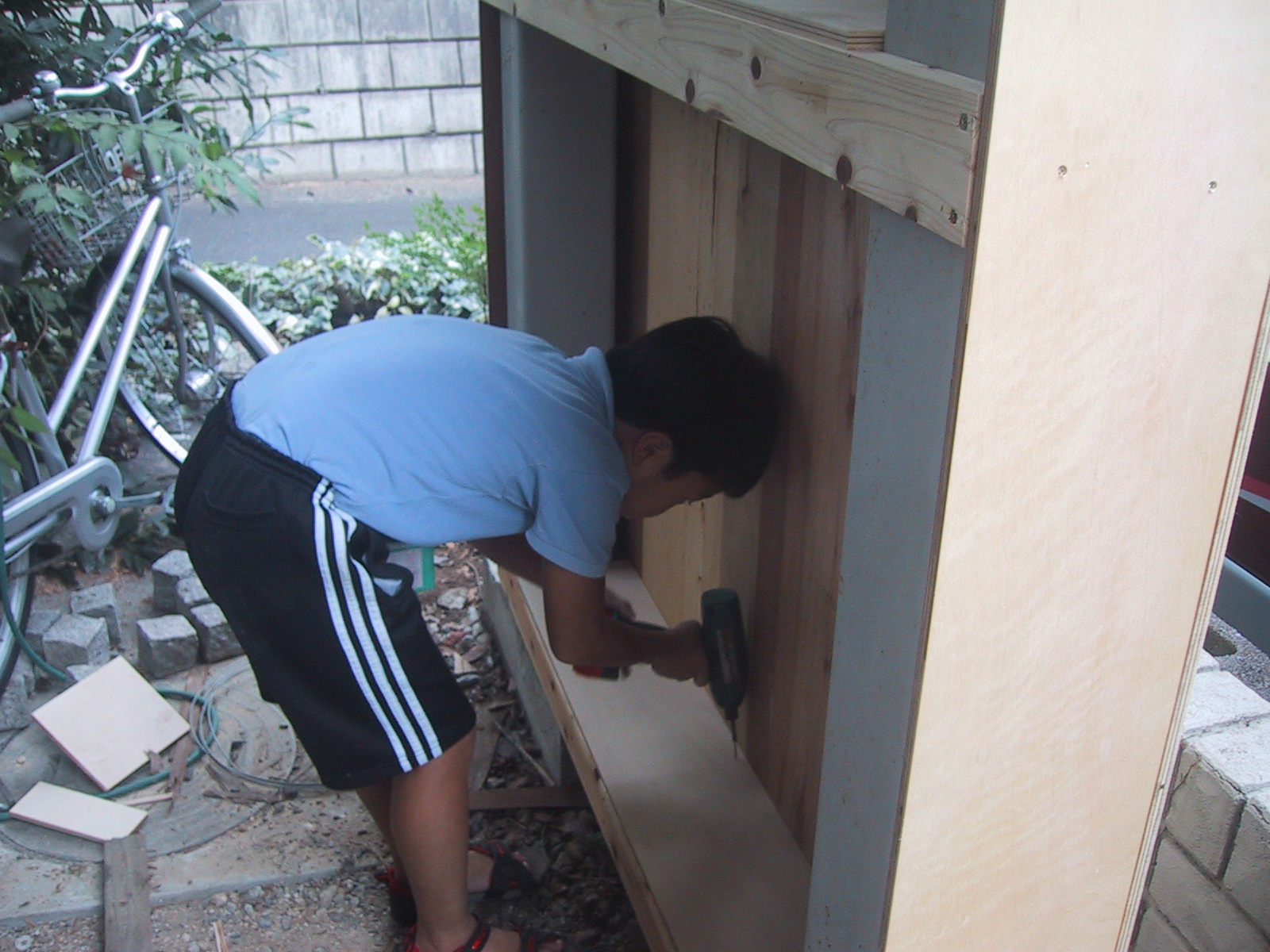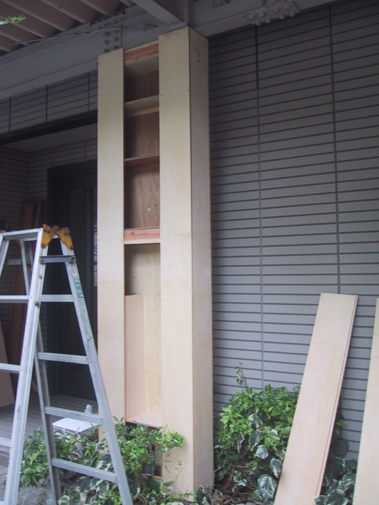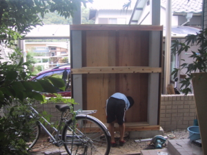 コンパネと桟木をビスで止めながら上へ上へと組み立てます。