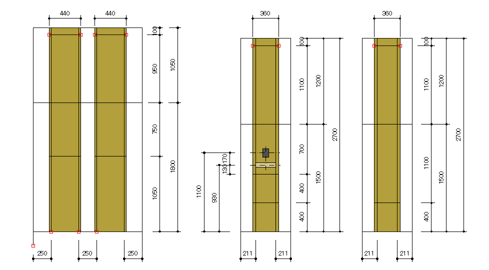 ガレージの柱が15cm角の鉄骨なので、その鉄骨の周りを厚さ25mmの桟木で囲み、長方形の空間を作ります。
