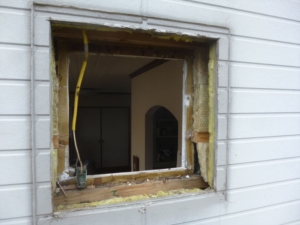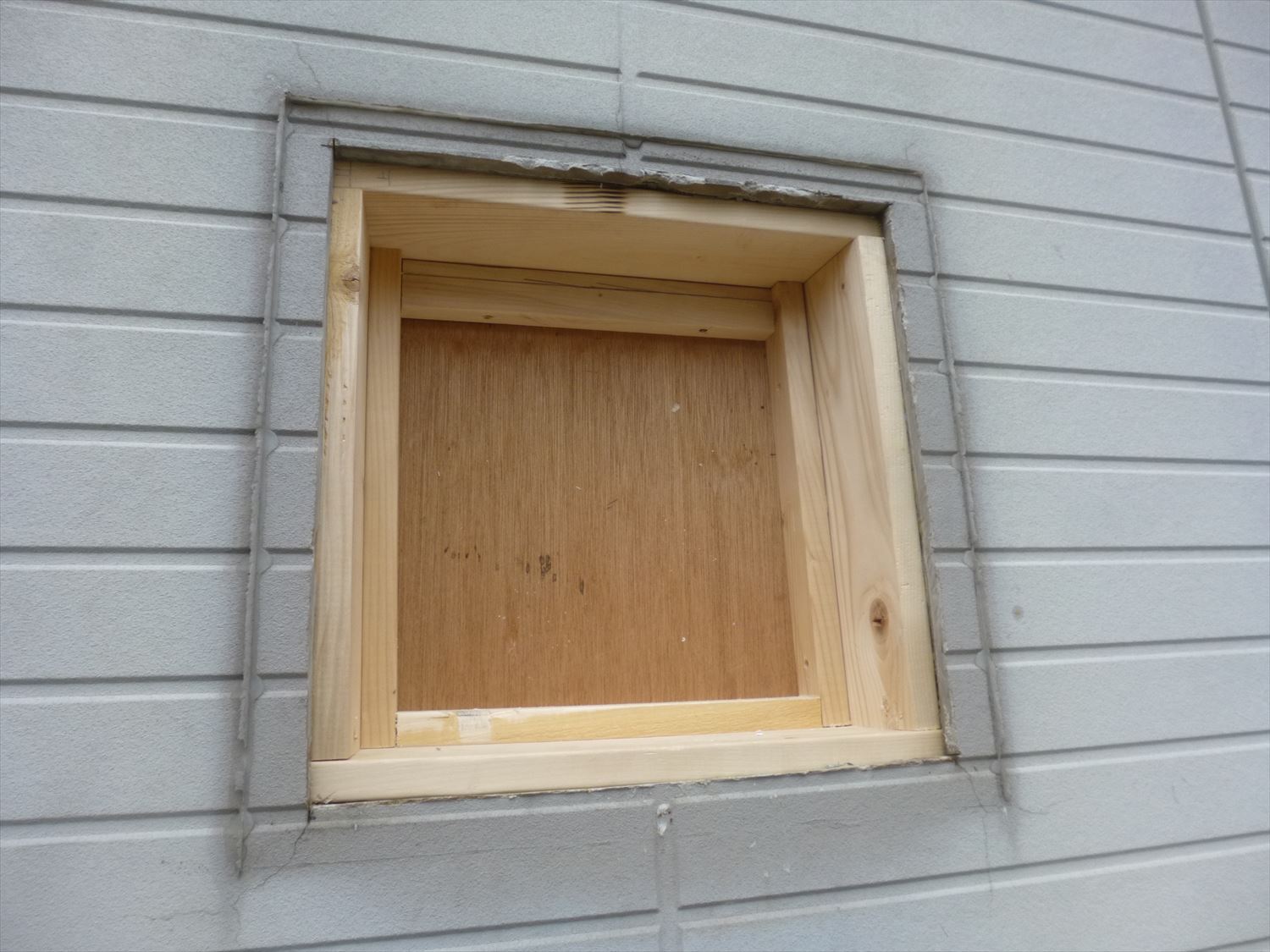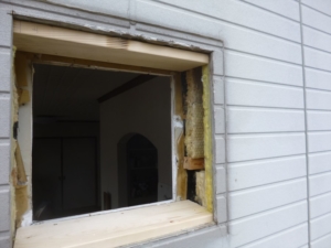外側はたまたま新築のときにとっておいた外壁を張ります。