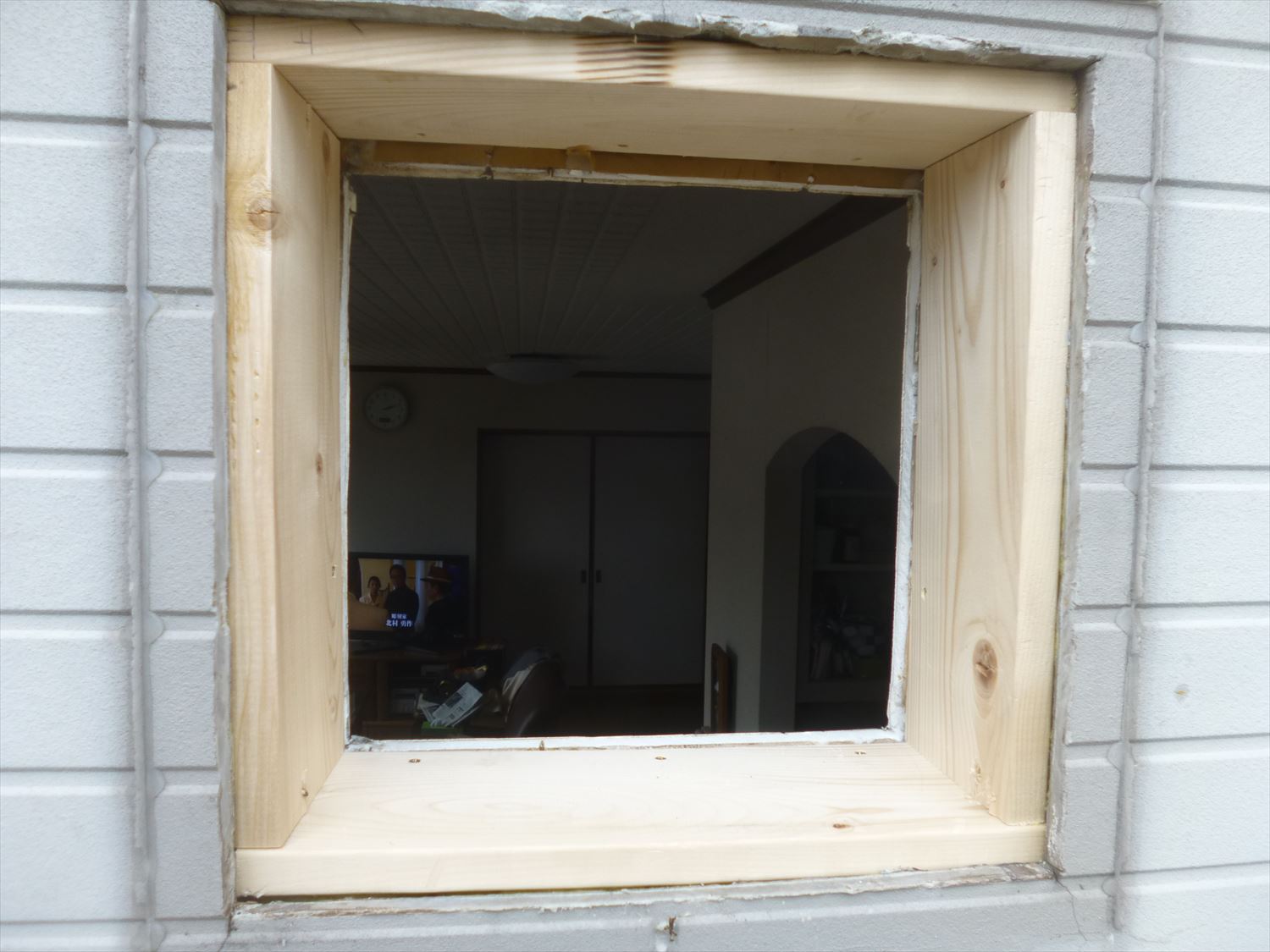 室内側に合板を取り付けるためにさらに枠を取り付けます。