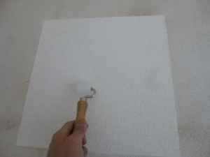 ケイカル板は水に弱いので塗装をします。