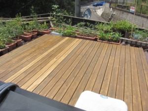 檜なんて風呂に使われるくらいだから水には強いだろうと思って塗装もせずに放置していたら、何のことはない10年位たった頃から腐って足元が怪しくなってきたのでした。
