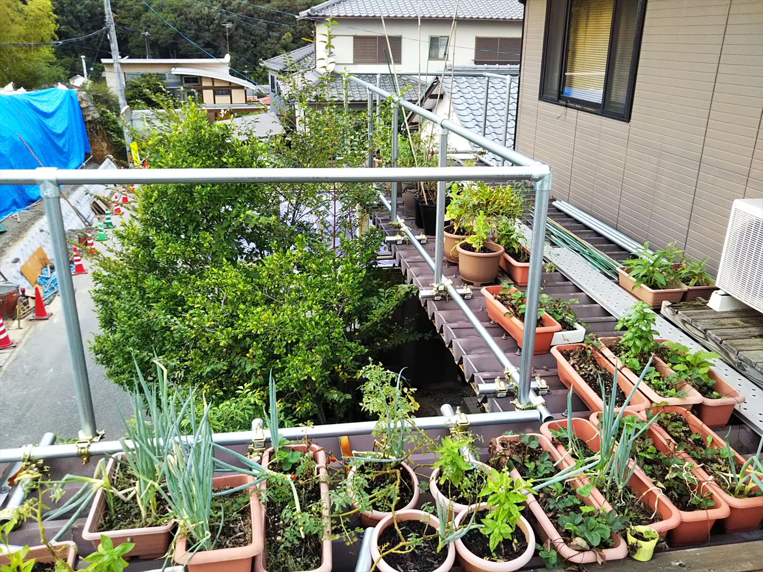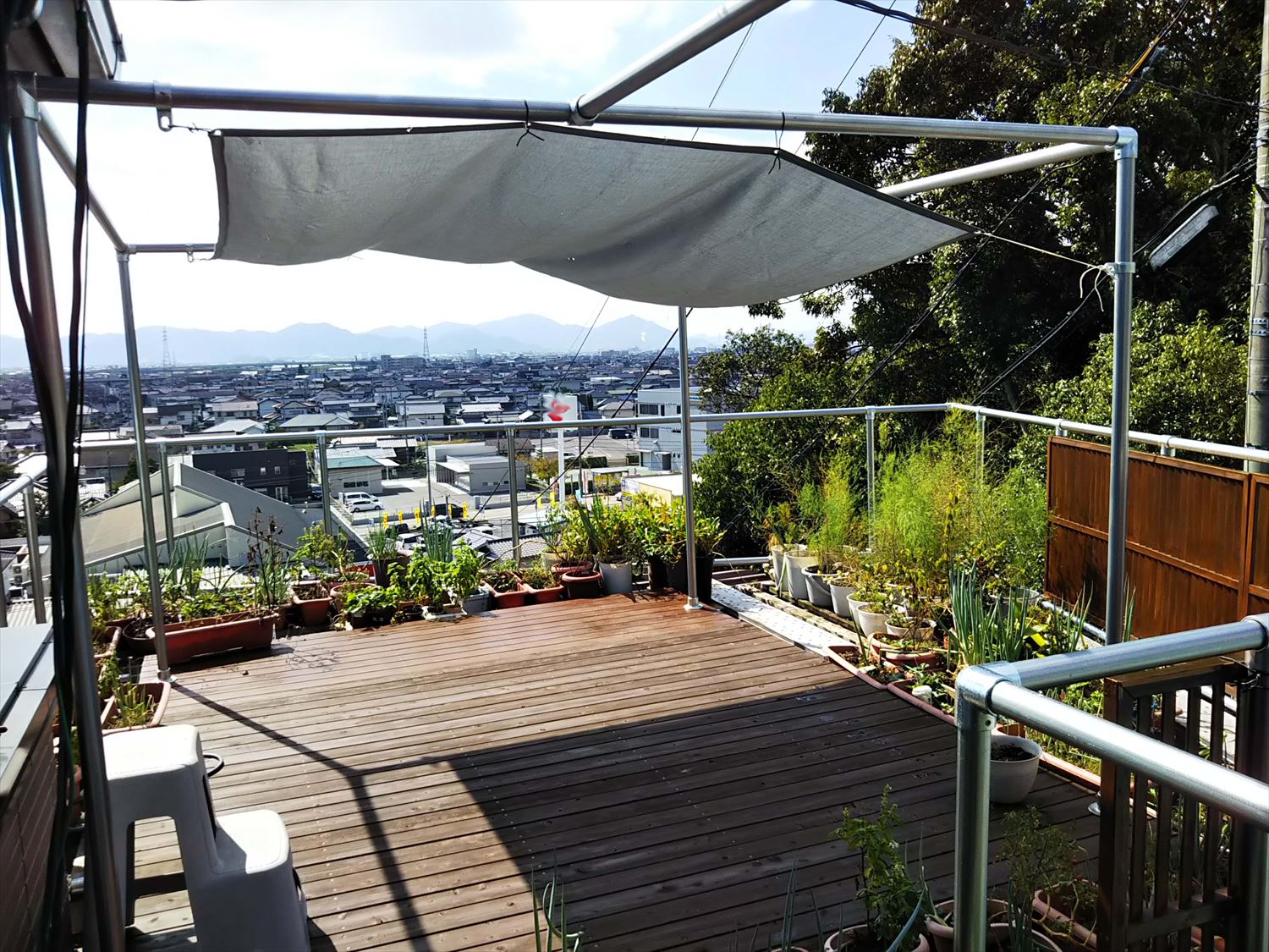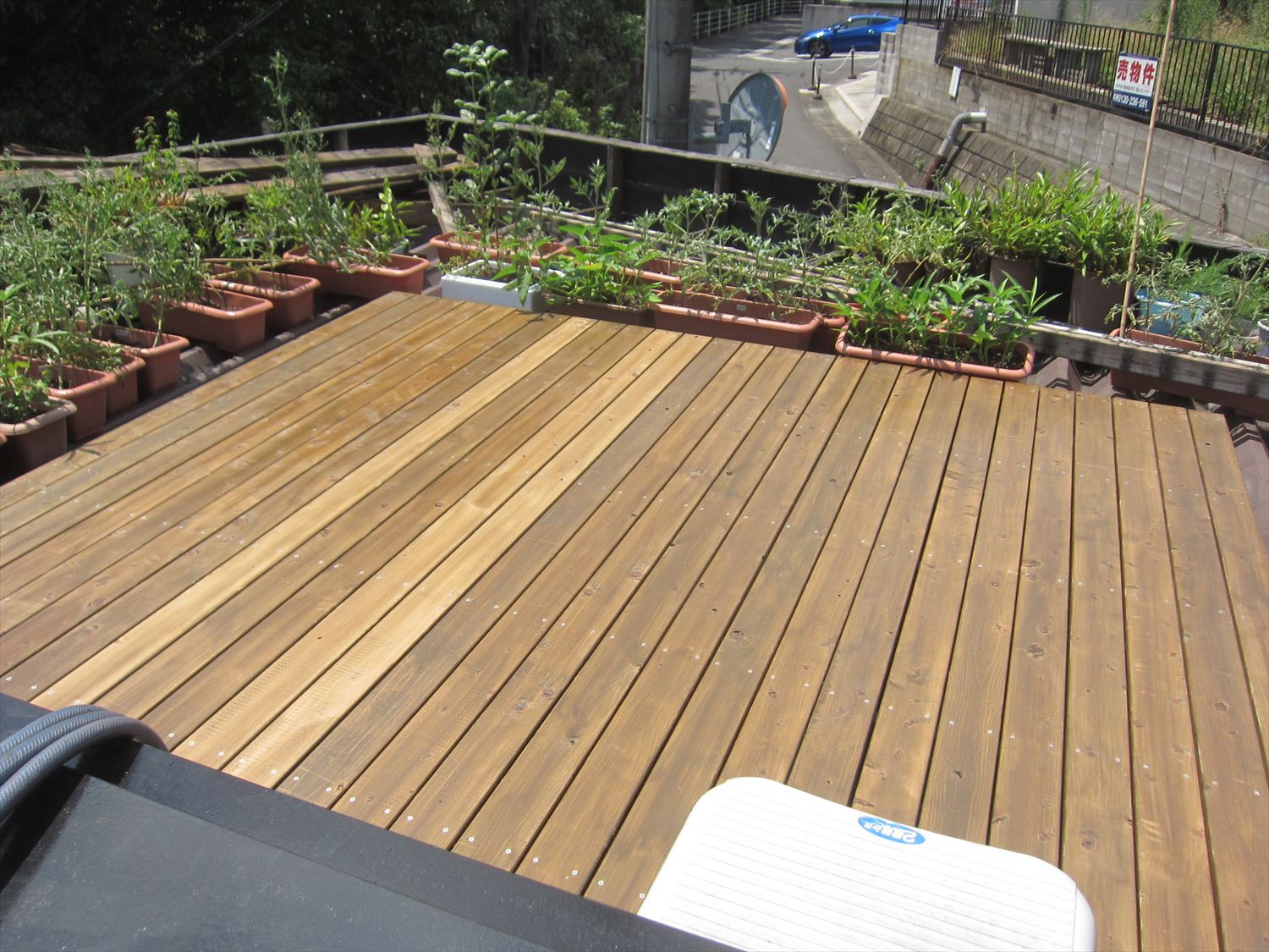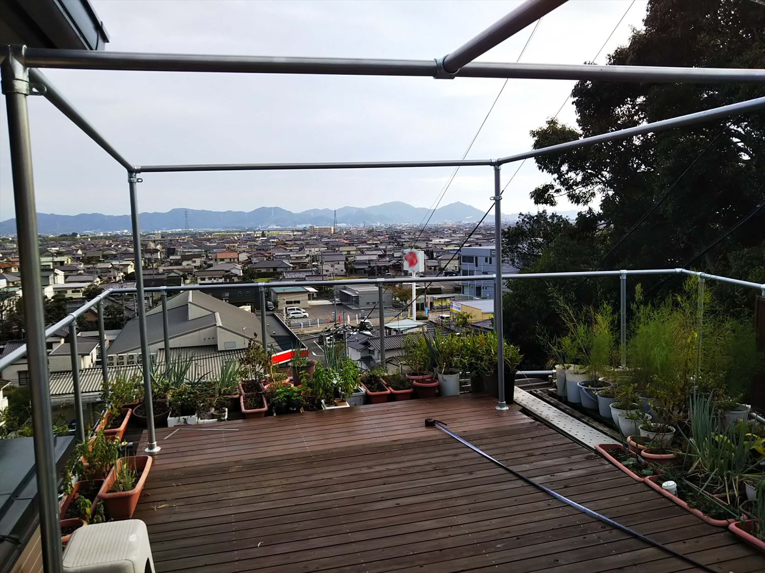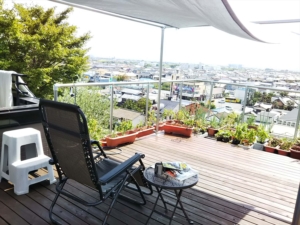 ガレージデッキとは、鉄骨造のガレージの屋根の上に作ったウッドデッキのことです。