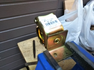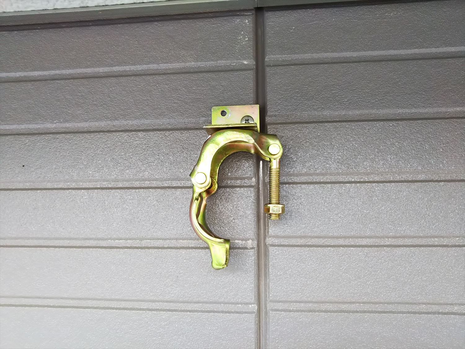 ガレージの屋根へ止めた時に使った単管クランプを壁にネジ止めし
