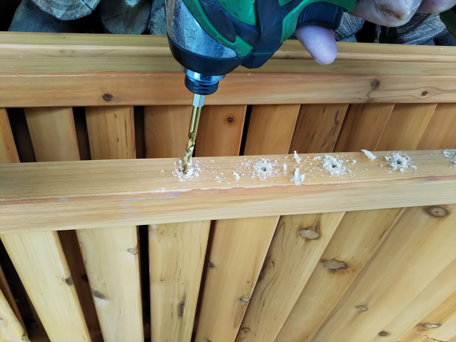 ネジを打ち込みすぎると、ネジの頭の部分がへこんで水が貯まるので程々に締めます。
