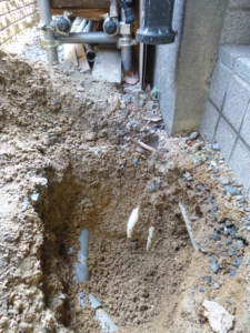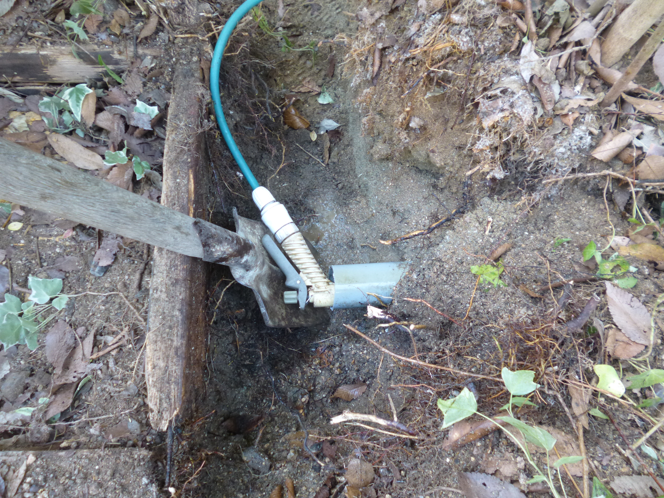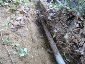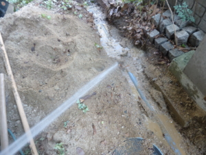 配水管を埋めてある部分を少し掘って、配水管を切ってみると