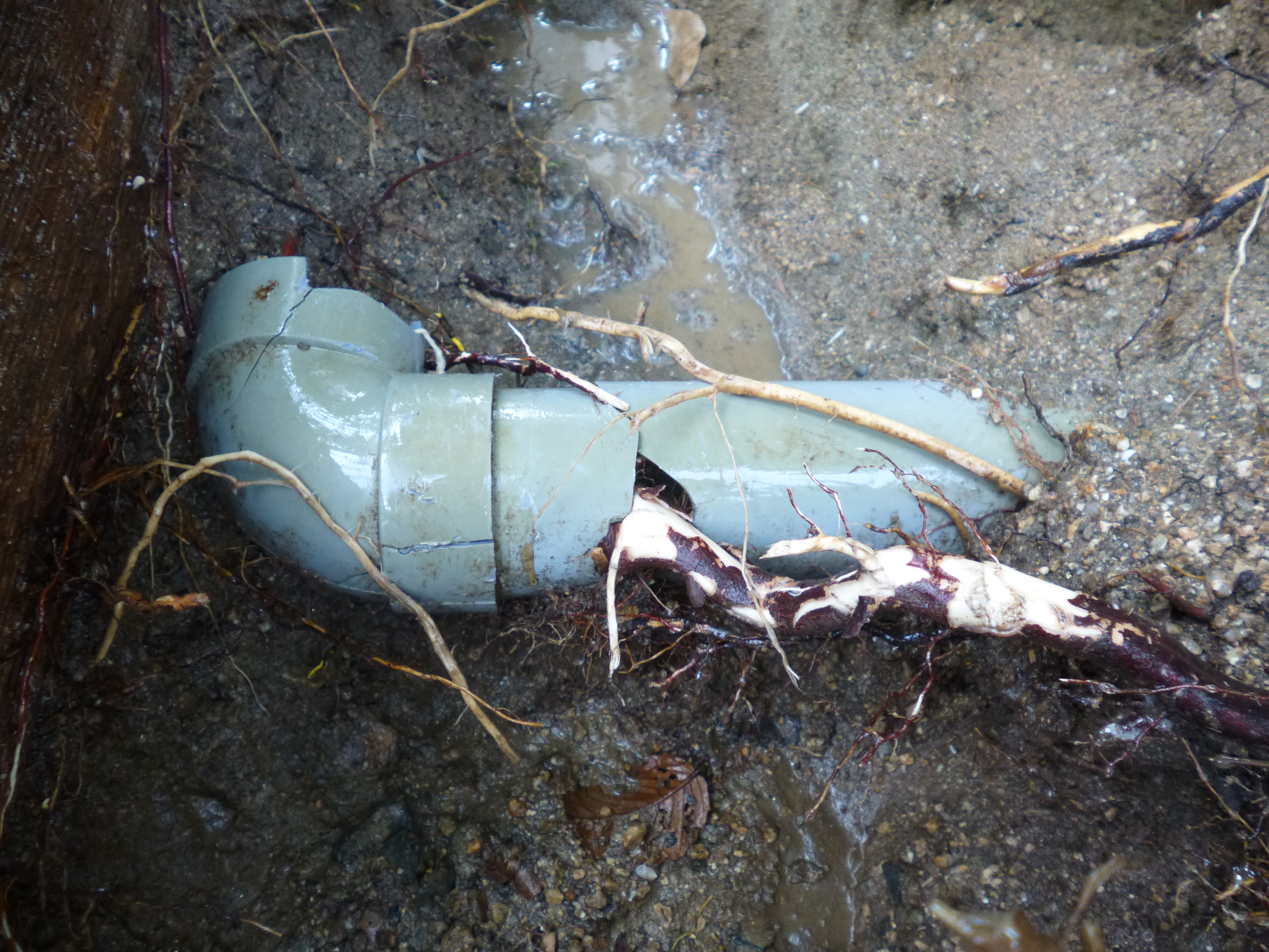 配水管の割れ目から根が浸入しています。