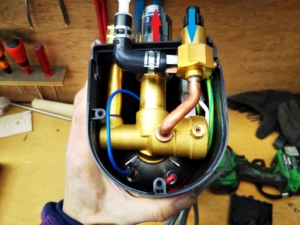 基板などないのでこの真鍮の部品の中にサーモスタットが内蔵されているようだ。