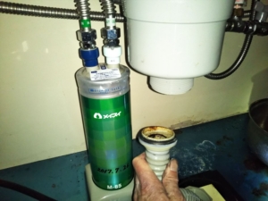 膨張水の排水は既存の排水口の下の部分を外し、