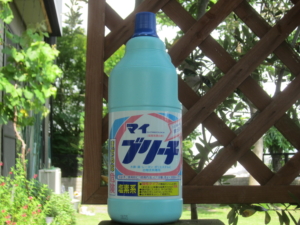 よく似た製品に「マイキッチンブリーチ」がありますが、こちらはマイブリーチにさらに界面活性剤を加えたものです。キッチンハイターも同じ。うちでは植物の水やりにも使うのでこちらは却下。