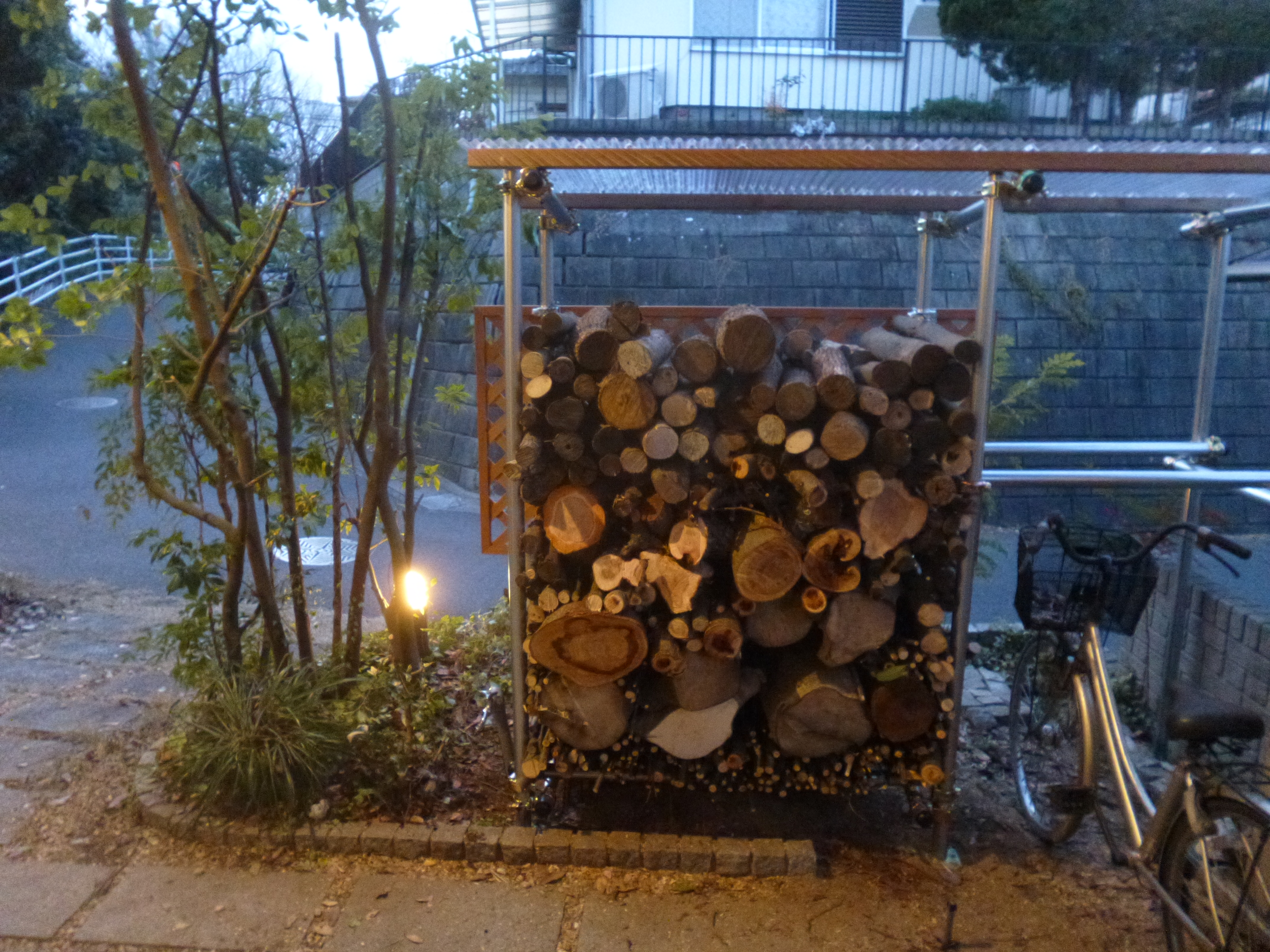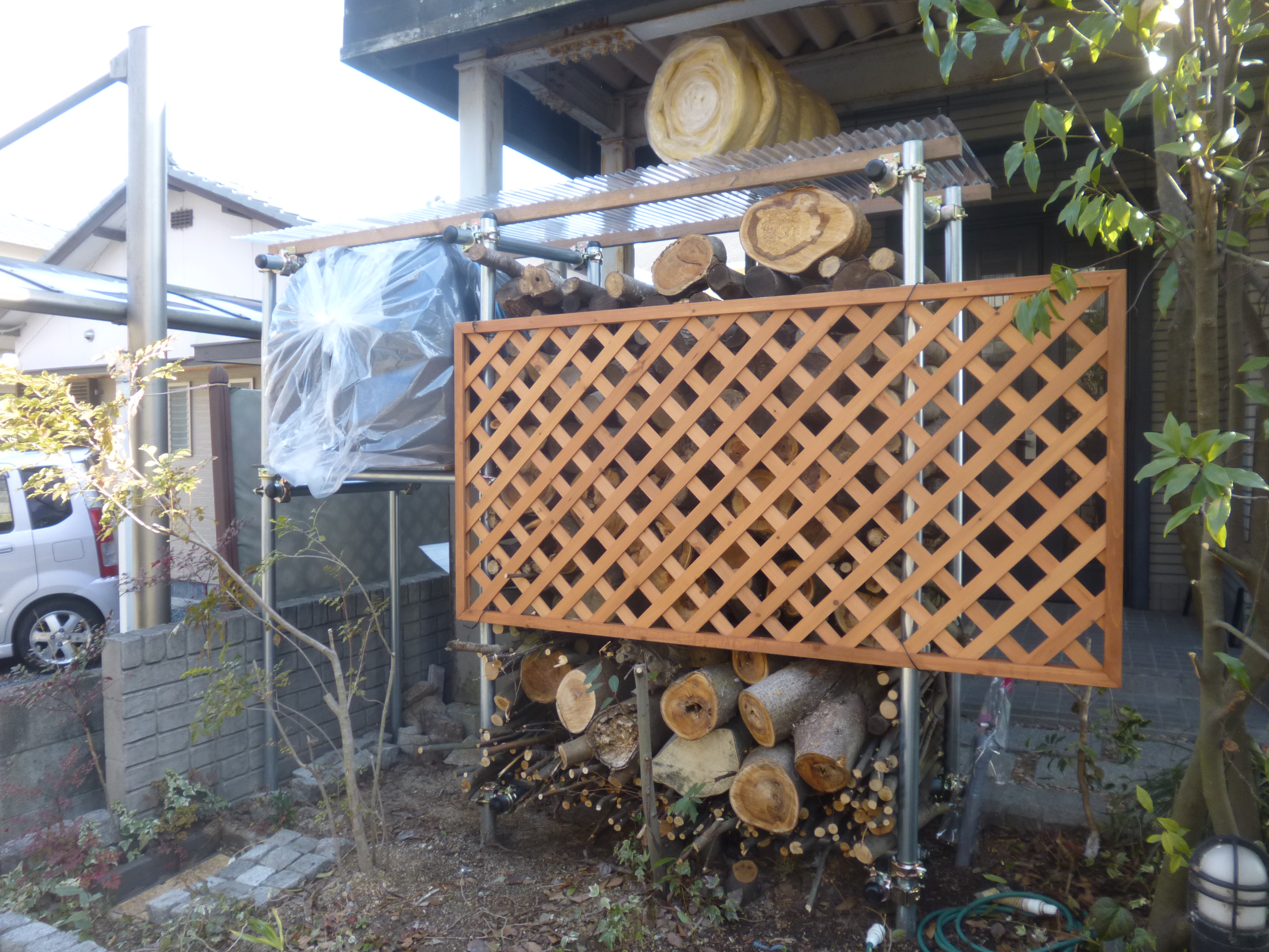 設置場所は以前薪置き場を単管パイプで増設したときにあらかじめ計画していた玄関前のこの場所。