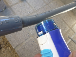 水道管VP13用の接続部品を使いますが、タンクの蓋から取り付けようと思っても手が届かないのです。