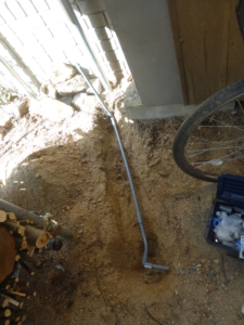 第1のタンクへの配管は地下部分は既に配管しているので、新たに掘り出してタンクの下に接続できるよう延長します。