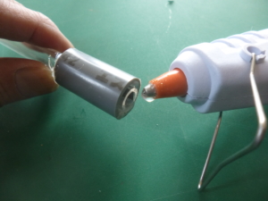 水位計の透明アクリルパイプと塩ビパイプは今回はグルーガンで接続しました。