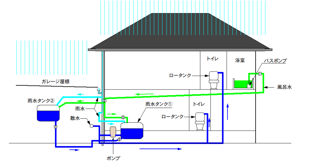 第2のタンクは、家の屋根に降った雨水と風呂水だけ貯めることができます。