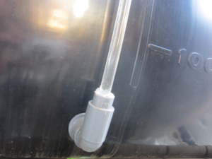 水位計は外形10mmの透明アクリルパイプを使用しました。塩ビパイプとの接続は、グルーガンで行いました。