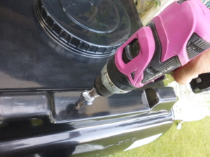 大雨が降ったときのための、オーバーフロー用のホースを取り付ける穴も開けておきます。